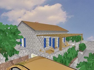 Mala kamena kuća za odmor sa velikim vrtom i terasom. Dizajn interijera, kupaonica, namještaj, boje, rasvjeta, vrt, dvorište. Interijer kuće je koncipiran kao otvoren prostor sa vidljivim gredama i krovištem.U 55m2 smjestio se i veliki kamin,te 2 prostora za spavanje.