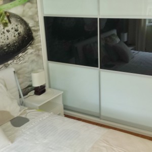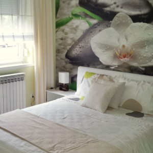 Izdvojena spavaća soba je svijetla i intimna, sa velikim ormarom i duplim zavjesama.