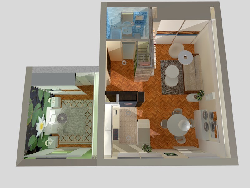 U 48m2 bivšeg poslovnog prostora nastao je mali elegantni stan.Potpuno preuređen, pažljivo i detaljno dizajniran stan funkcionalno i estetski je prilagođen životnom stilu vlasnika.