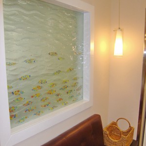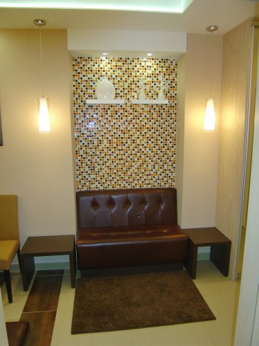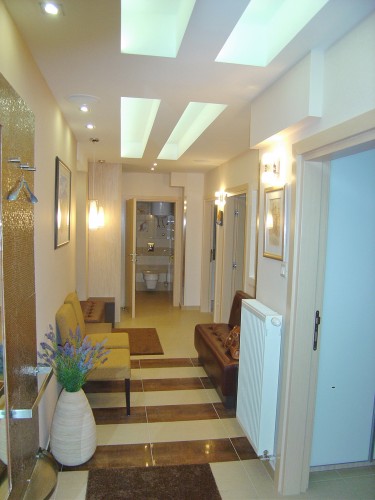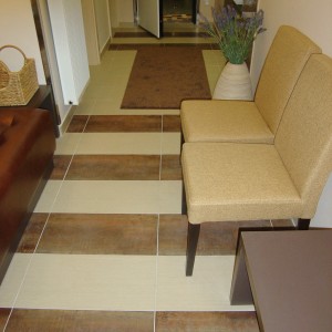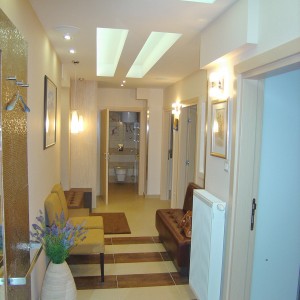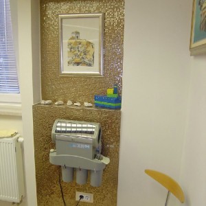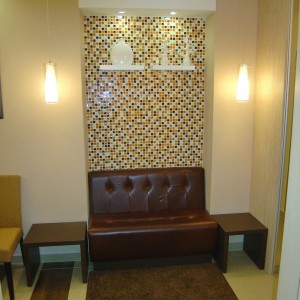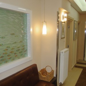 Elegantna čekaonica ima više načina rasvjete,ukrasne elemente u mozaiku i zanimljiv pod. Vesele slike s morskim prizorima zaokružuje dojam ugodnog prostora. Radi više dnevnog svjetla ugradili smo unikatni "prozor" u kaljenom staklu. Sav namještaj je dizajniran za prostor i izrađen je po mjeri.