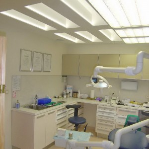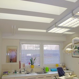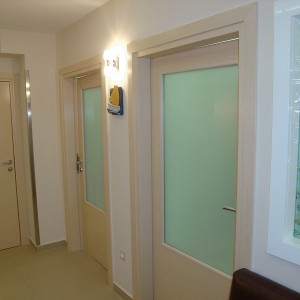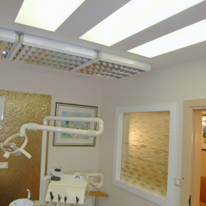 Svijetle pastelne boje zidova, namještaja i podova u ordinacijama usklađene su uz dijelove zidova obučene u mozaik/zbog zaštite zida i kao ukras. Duboki utori u stropovima su osvjetljeni LED trakama. Topla bijela svjetlost daje prozračnost ordinacijama.
