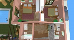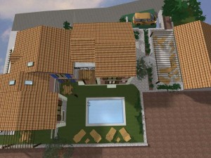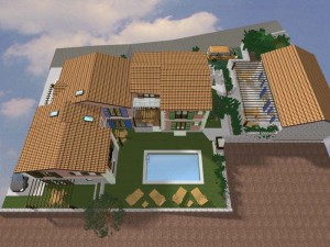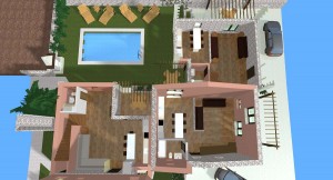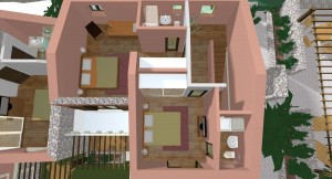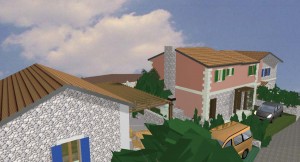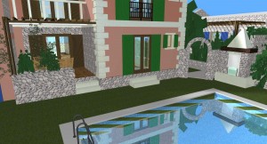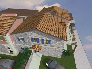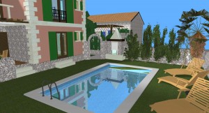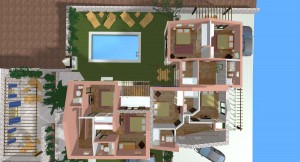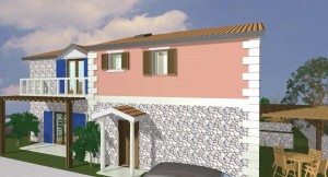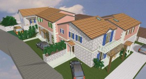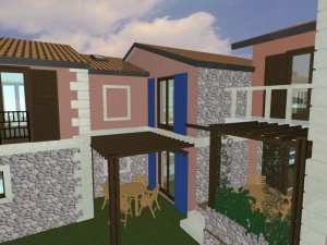 3D dizajn/vizualizacija i idejno rješenje za kompleks od 4 kamene vile s bazenom, sa detaljnim rješenjima za okoliš. Na temelju geodetskih izmjera imanja napravljeno je rješenje za 4 vile, sa detaljnim prikazima za interijer i opremanje svakog prostora u 3D programu ArchiCad .